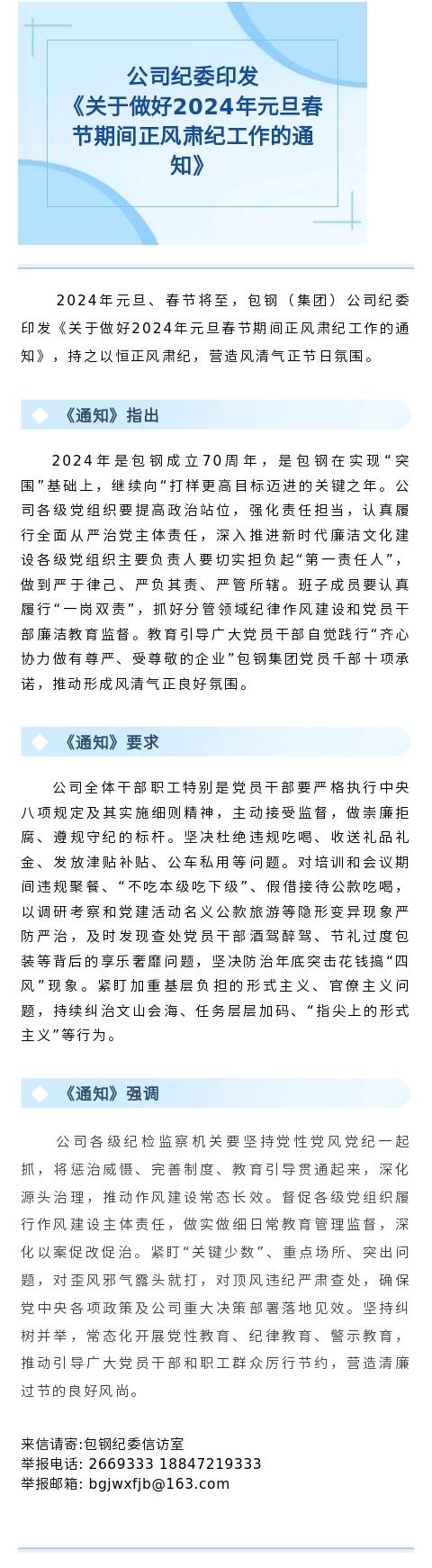 廉洁过节 | 公司纪委印发《关于做好2024年元旦春节期间正风肃纪工作的通知》