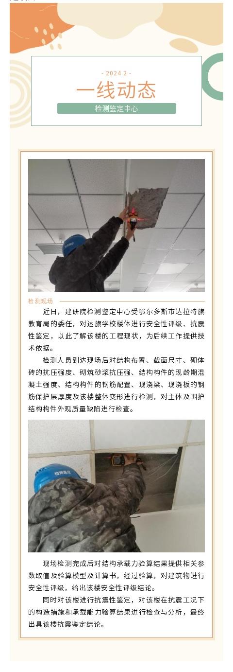 建研院完成鄂尔多斯市达拉特旗第五中学教学楼检测鉴定项目
