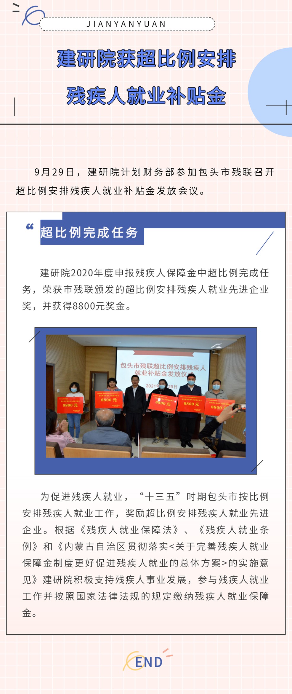 包头冶金建筑研究院获超比例安排残疾人就业补贴金