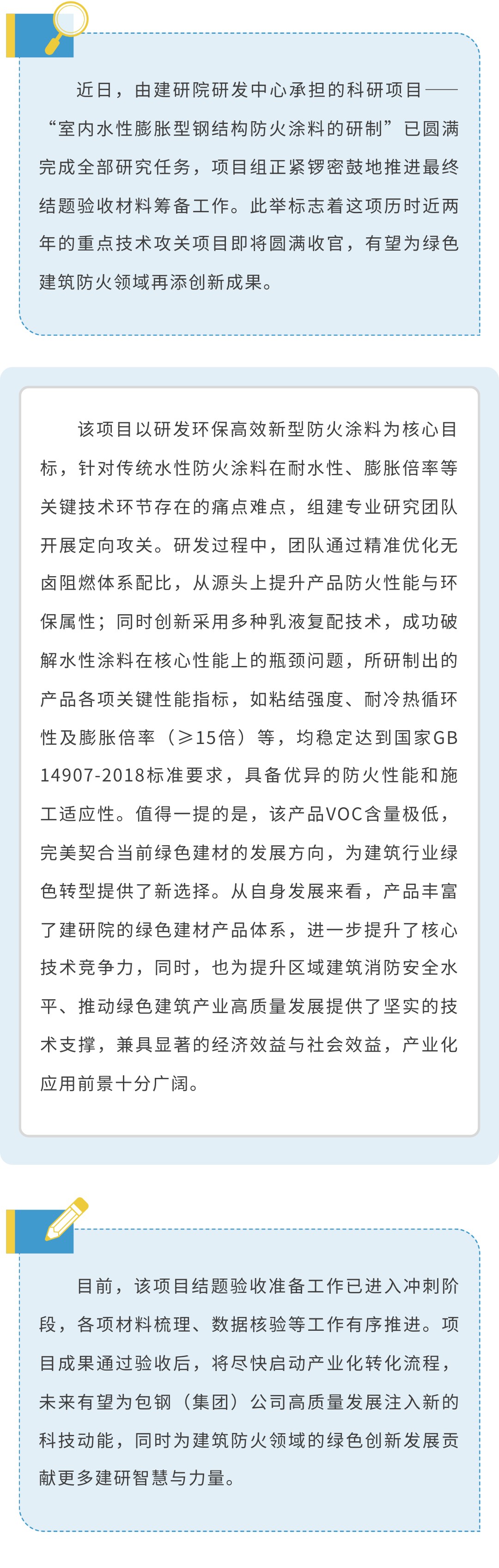 “室内水性膨胀型钢结构防火涂料的研制”即将结题验收