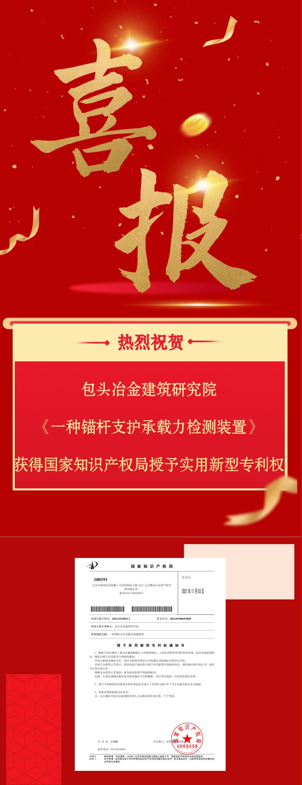 喜 报!国家专利来啦!
