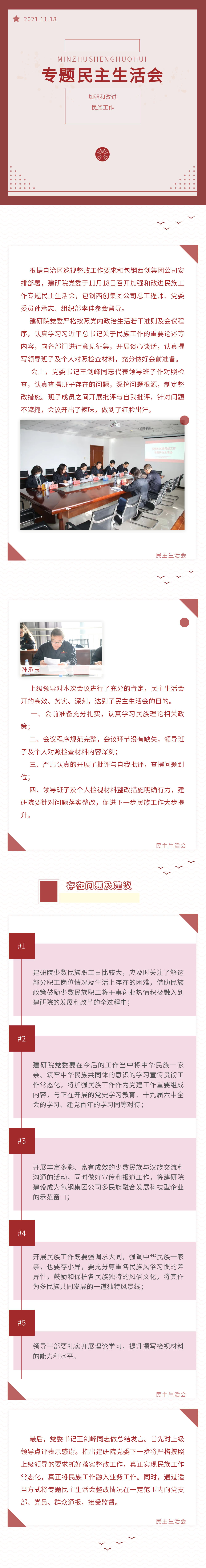 包头冶金建筑研究院党委召开加强和改进民族工作专题民主生活会