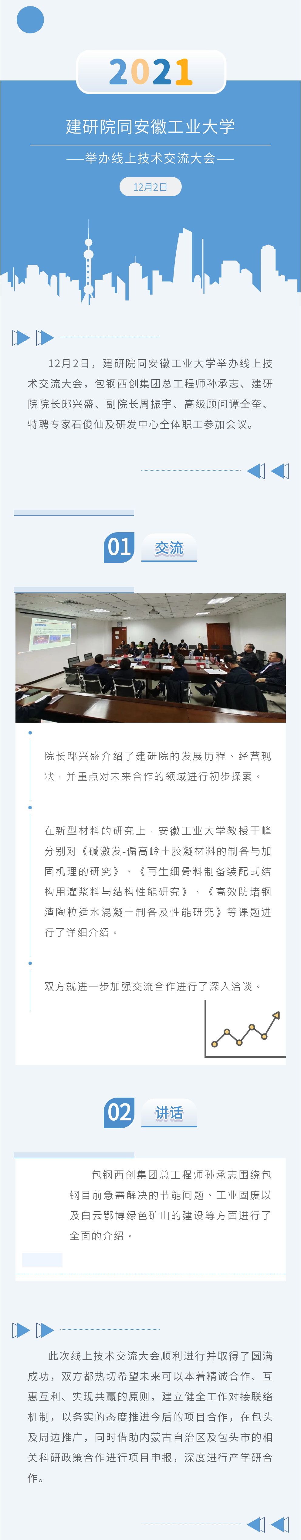 包头冶金建筑研究院同安徽工业大学举办线上技术交流大会