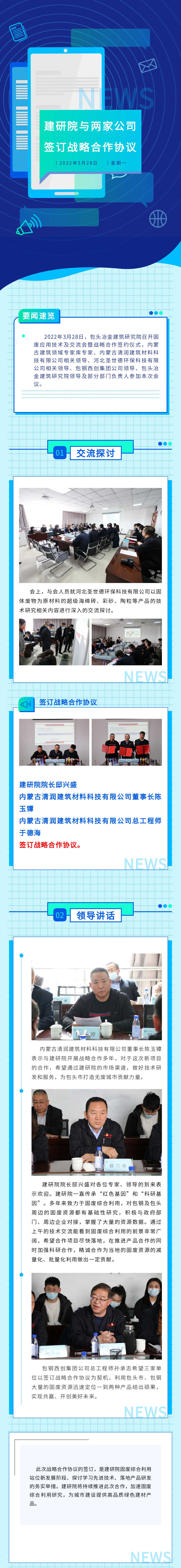 包头冶金建筑研究院与内蒙古清润建筑材料科技有限公司、河北圣世德环保科技有限公司签订战略合作协议