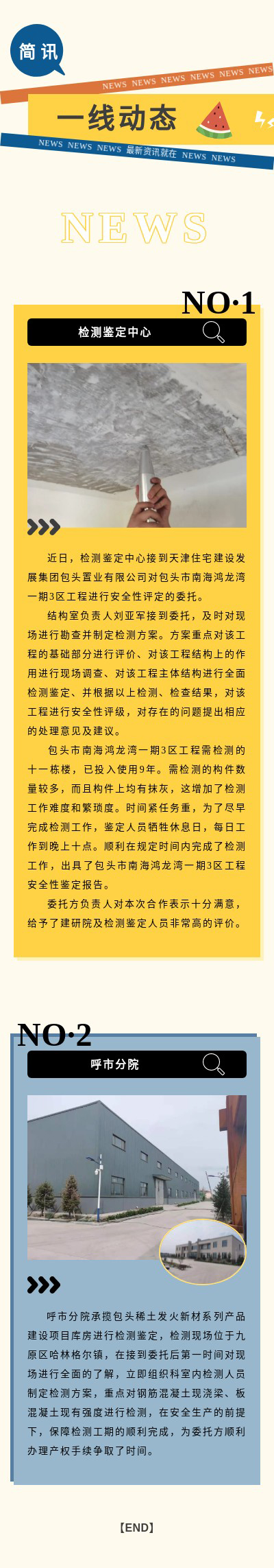 包头冶金建筑研究院承揽完成多项检测、鉴定任务